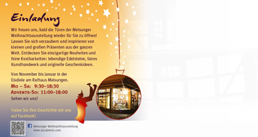 Poster und Einladung für eine jährliche Weihnachtsausstellung in der Fachwerkstadt Melsungen.