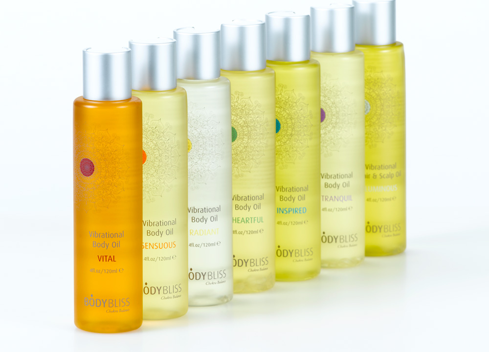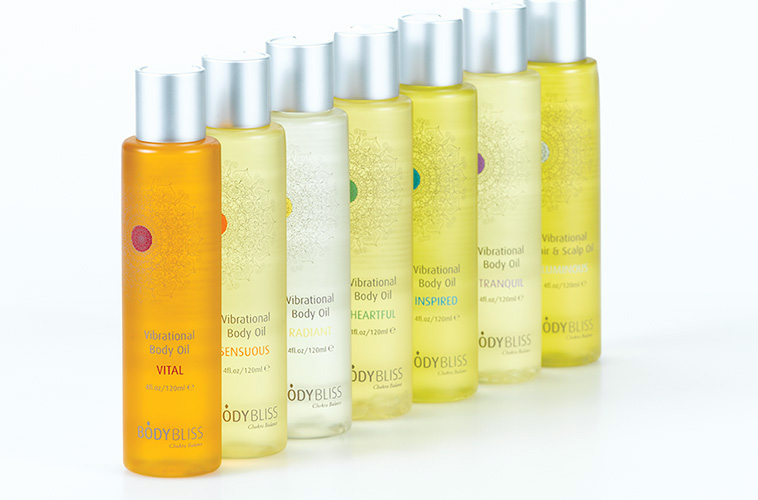 Kollektion für Körper und Geist mit Produkten ausgelegt für die verschiedenen Chakren im Körper.